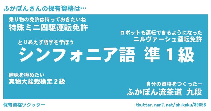 | ヒーロー風カッコイイあだ名 | 『スーパーフカポン』『天弓騎士フカ』 |