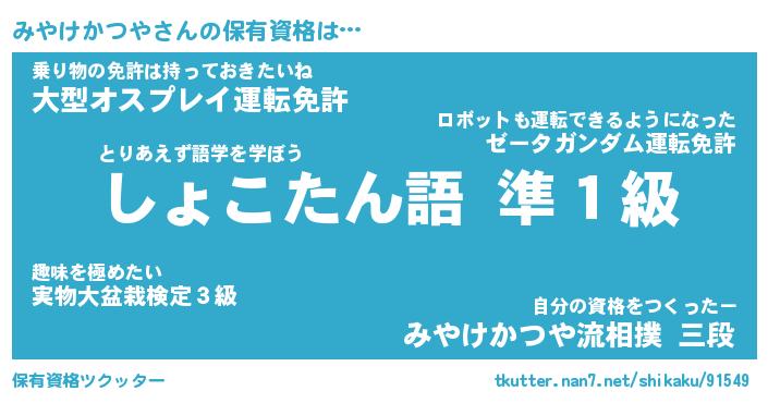 | 伝説のあだ名 | 『封印されし傭兵みやけかつや』 |