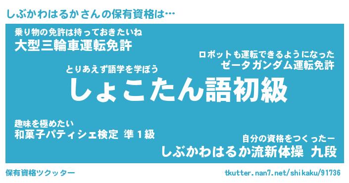 | 女子向けラノベタイトル風あだ名 | 『誰かこのしぶかわはるかを説明してください! ~契約から始まるウェディング~』 |