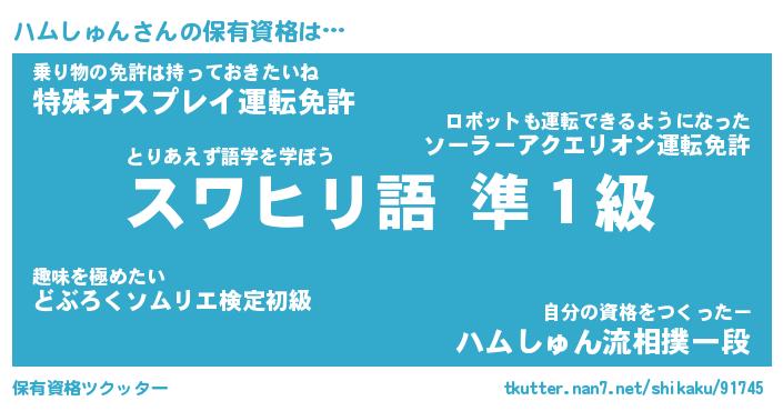 | ヒーロー風カッコイイあだ名 | 『スーパーハムシュン』『魔戒騎士ハム』 |