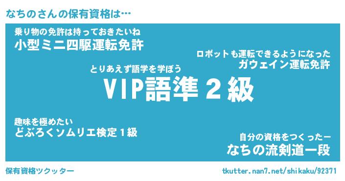なちのさんの保有資格は… とりあえず語学を学ぼう『 VIP語準2級』乗り物の免許は持っておきたいね『小型ミニ四駆運転免許』自分の資格をつくったー『なちの流剣道一段』 ツクッター #保有資格ツクッター http://tkutter.nan7.net/shikaku/92371/