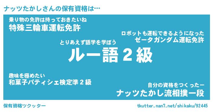 | 伝説のあだ名 | 『封印されし竜騎士ナッツたかし』 |