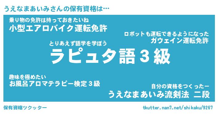 | 恥ずかしいあだ名 | 『プリティーうえなまあいみ』『うえちん』 |