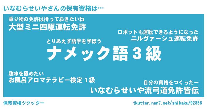 | ツイッター | いなむらせいやさんのツイッターID『masyumaro_star』 |