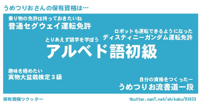 | ファンタジー風あだ名 | 『ウメフェル』『エターナルウメツリオー』 |