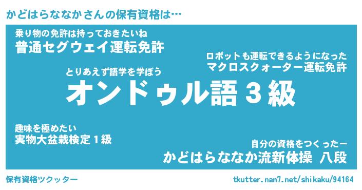 | 伝説のあだ名 | 『封印されし傭兵かどはらななか』 |