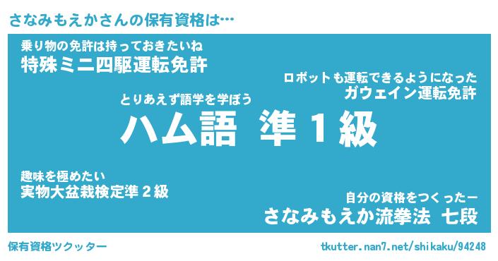 | 肩書あだ名 | 『さなみもえか店長』『さなみもえか団長』 |