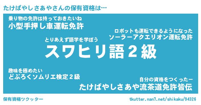 | 肩書あだ名 | 『たけばやしさあやCEO』 |