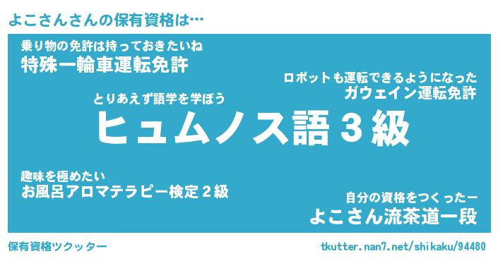 | ヒーロー風カッコイイあだ名 | 『スーパーヨコサン』『天弓騎士ヨコ』 |