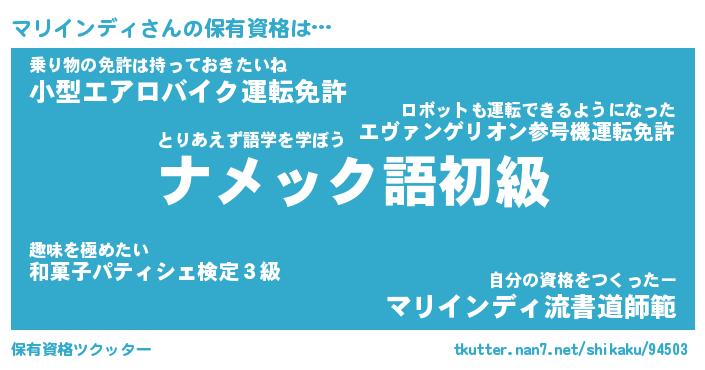 | 男性向けラノベタイトル風あだ名 | 『マリインディの憂鬱』 |