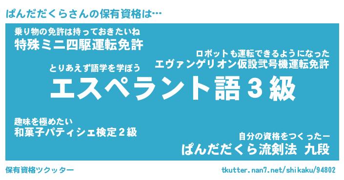 | 伝説のあだ名 | 『伝説の傭兵ぱんだだくら』 |
