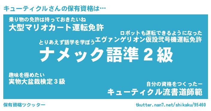 | ヘコむあだ名 | 『キュもー』『なまこ酢』『キュ太郎』 |