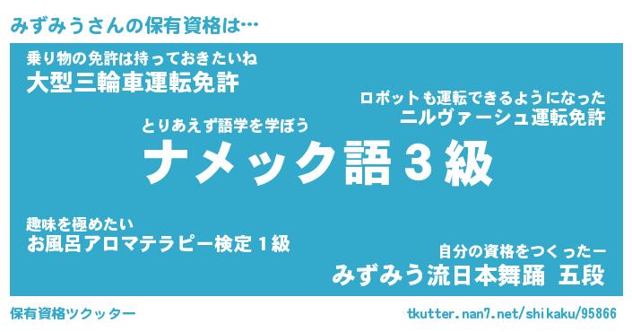 | ファンタジー風あだ名 | 『ミズフェル』『エターナルミズミウー』 |