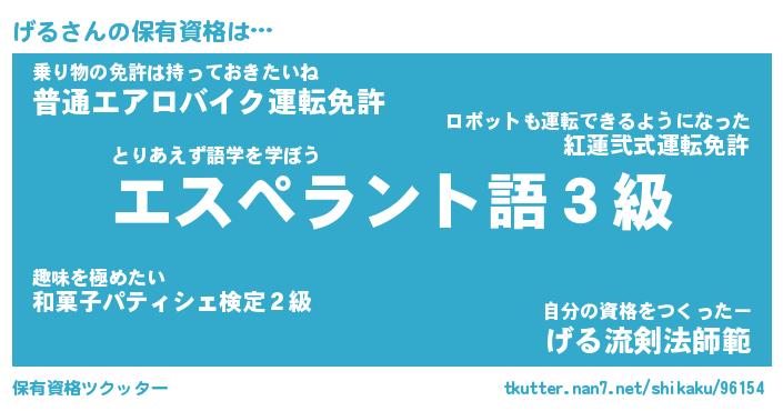 | 伝説のあだ名 | 『伝説の傭兵げる』『秘められし忍者げる』 |