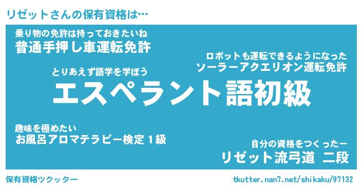 | 意味不明あだ名 | 『ペロリンリゼット』『永久保存リゼット』 |