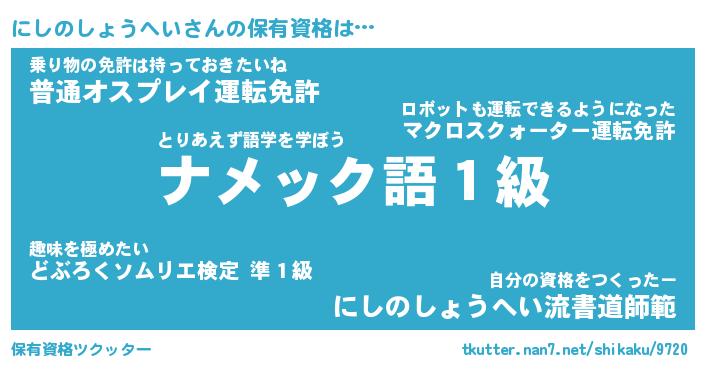 | ツイッター | にしのしょうへいさんのツイッターID『masyumaro_man』 |