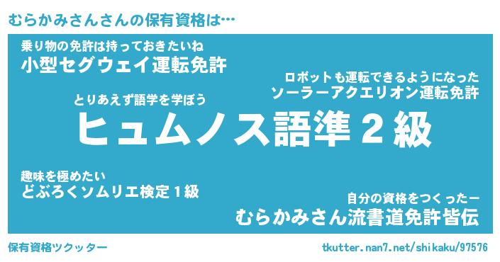 | ヒーロー風カッコイイあだ名 | 『スーパームラカミサン』『天弓騎士ムラ』 |