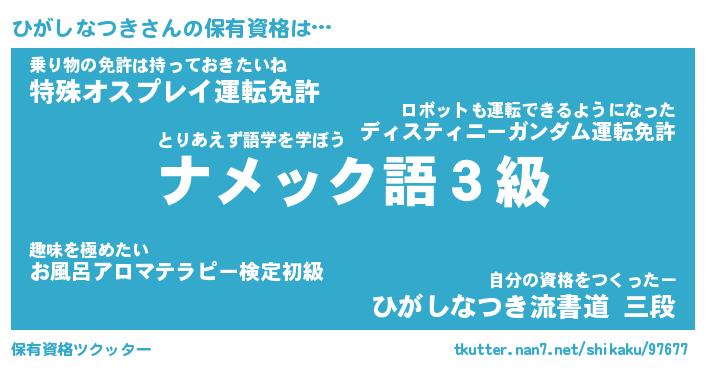 | ヒーロー風カッコイイあだ名 | 『スーパーヒガシナツキ』『魔戒騎士ヒガ』 |
