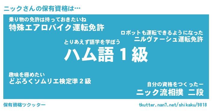 | 肩書あだ名 | 『ニック社長』『ニック大統領』 |