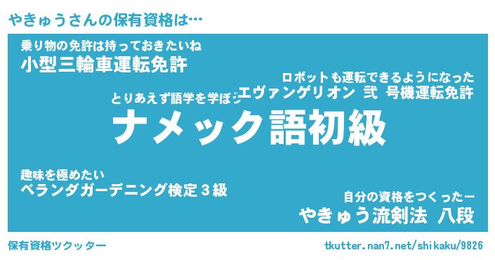 | ヒーロー風カッコイイあだ名 | 『スーパーヤキュウ』『天弓騎士ヤキ』 |