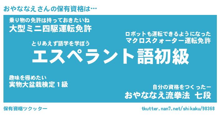 | ファンタジー風あだ名 | 『オヤフェル』『エターナルオヤナナエー』 |