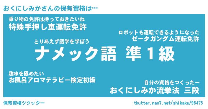 | 女子向けラノベタイトル風あだ名 | 『おくにしみか姫と円卓の騎士』 |