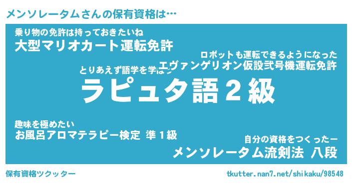 | 自動車の名前っぽいあだ名 | 『メンティマ』『メクア』『ヴィッメ』 |