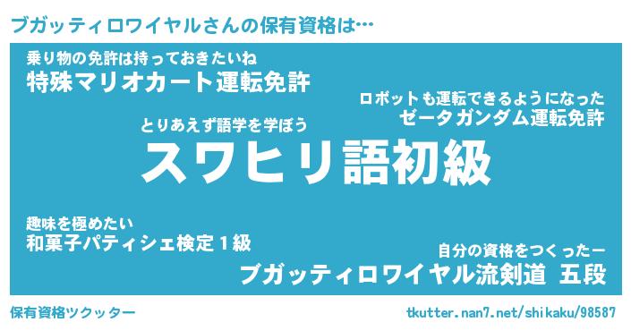 | 伝説のあだ名 | 『伝説のスナイパーブガッティロワイヤル』 |