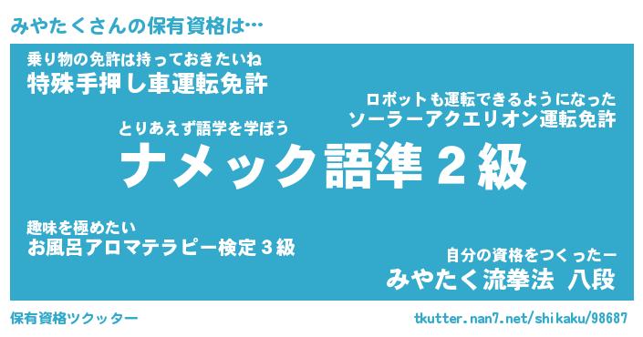 | ファンタジー風あだ名 | 『ミヤフェル』『エターナルミヤタクー』 |
