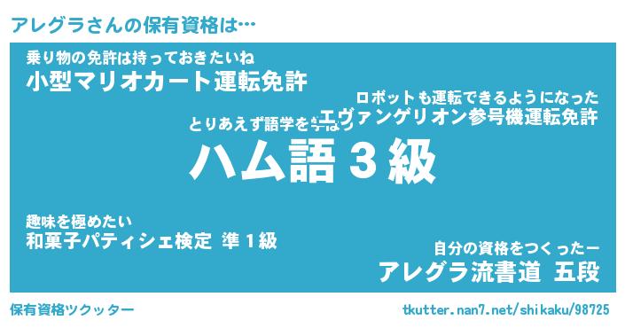 | ヒーロー風カッコイイあだ名 | 『スーパーアレグラ』『天弓騎士アレ』 |