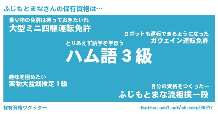 | ツイッター | ふじもとまなさんのツイッターID『katatsumuri_idle』 |