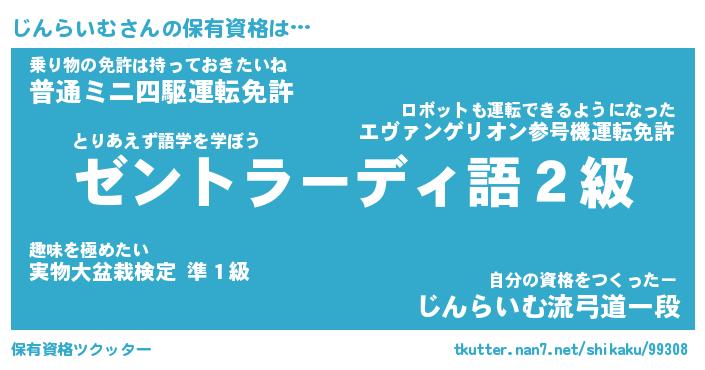 | 男性向けラノベタイトル風あだ名 | 『じんらいむの憂鬱』 |