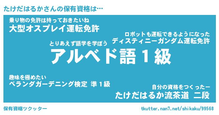 | ヒーロー風カッコイイあだ名 | 『スーパータケダハルカ』『幻影騎士タケ』 |