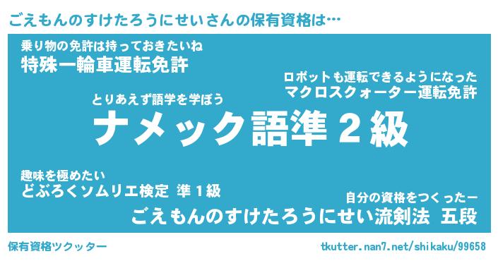 | 胡散臭い通販商品みたいなあだ名 | 『モテモテ間違いなし霊験あらたかなお札…その名も「ごえもんのすけたろうにせい」』 |