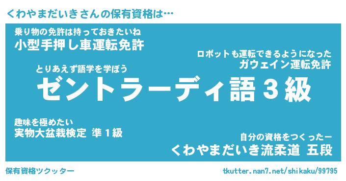 | ツイッター | くわやまだいきさんのツイッターID『masyumaro_star』 |