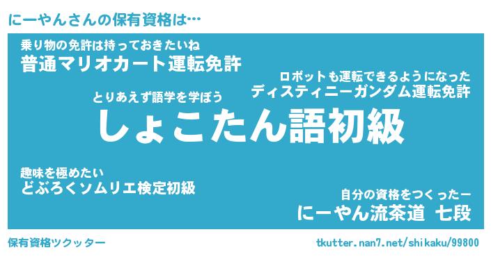 | 意味不明あだ名 | 『ペロリンにーやん』『永久保存にーやん』 |
