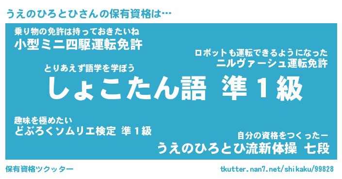| ポケモン風あだ名 | 『ウエチュウ』『ウエノダネ』 |