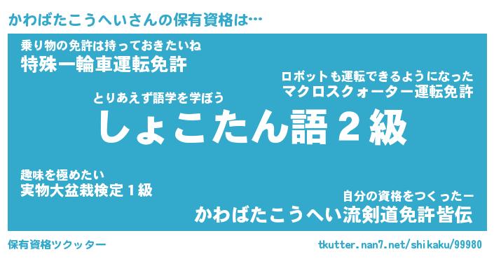 | 伝説のあだ名 | 『封印されし竜騎士かわばたこうへい』 |