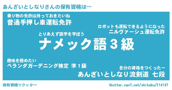 | 肩書あだ名 | 『あんざいとしなり店長』 |