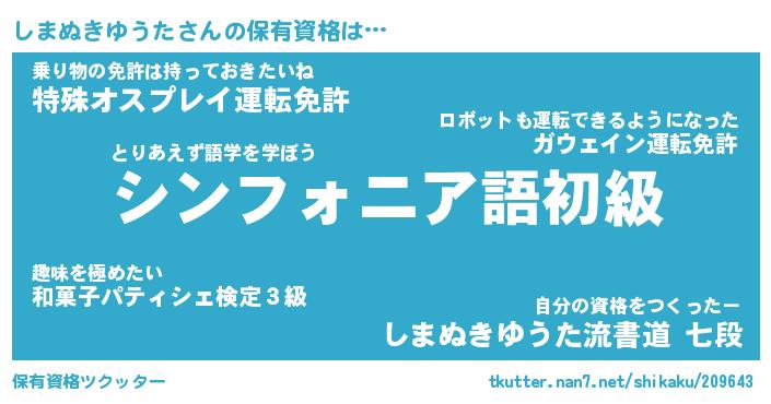 | 肩書あだ名 | 『しまぬきゆうた御曹司』 |