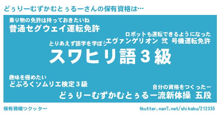 | 伝説のあだ名 | 『伝説の傭兵どぅりーむずかむとぅるー』 |