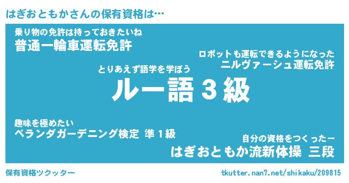 | ヘコむあだ名 | 『はぎにゅー』『つくし』『はぎを』 |
