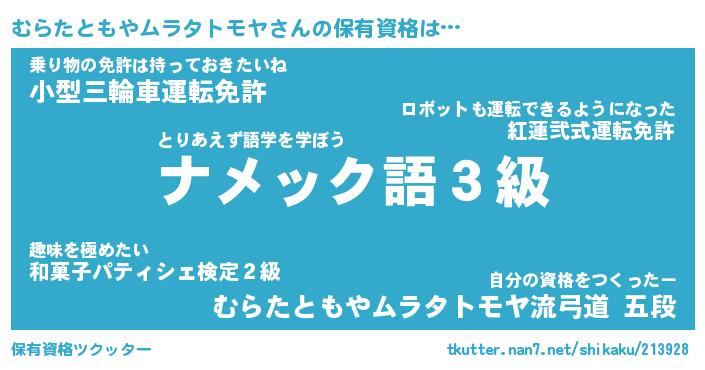 | 伝説のあだ名 | 『不死鳥の傭兵むらたともやムラタトモヤ』 |