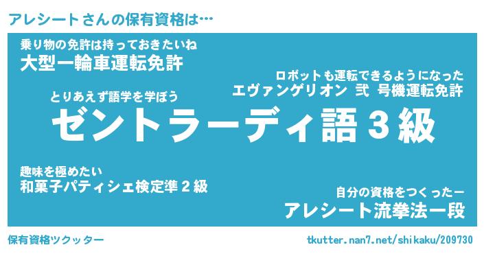 | 男性向けラノベタイトル風あだ名 | 『アレシートの憂鬱』 |