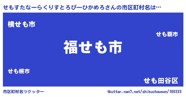 | 肩書あだ名 | 『せもすたなーらくりすとろびーひかめろ少将』 |