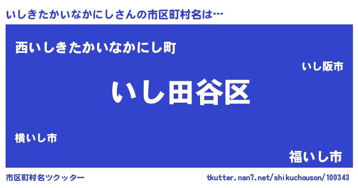 いしきたかいなかにしさんの市区町村名は… 『いし田谷区』『西いしきたかいなかにし町』『福いし市』 ツクッター #市区町村名ツクッター http://tkutter.nan7.net/shikuchouson/100343/