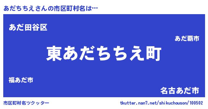 | 男性向けラノベタイトル風あだ名 | 『あだちちえの憂鬱』 |