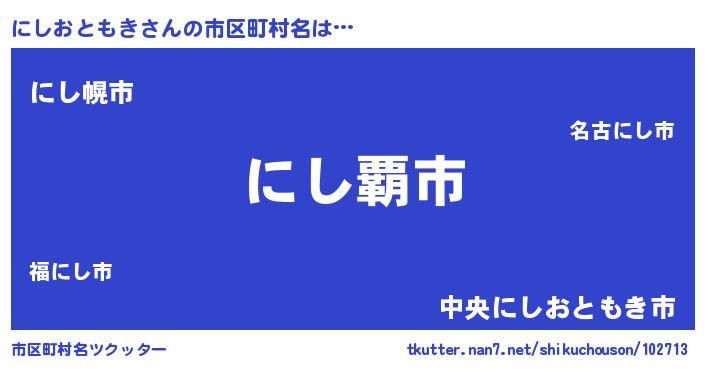 | 男性向けラノベタイトル風あだ名 | 『にしおともきという概念が存在しない退屈な世界 』 |
