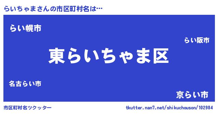 | 男性向けラノベタイトル風あだ名 | 『らいちゃまの憂鬱』 |