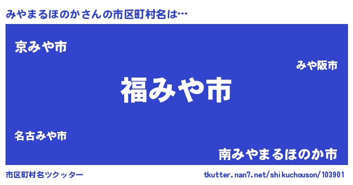 | 男性向けラノベタイトル風あだ名 | 『みやまるほのか~年齢イコール彼女いない歴の魔法使い~』 |
